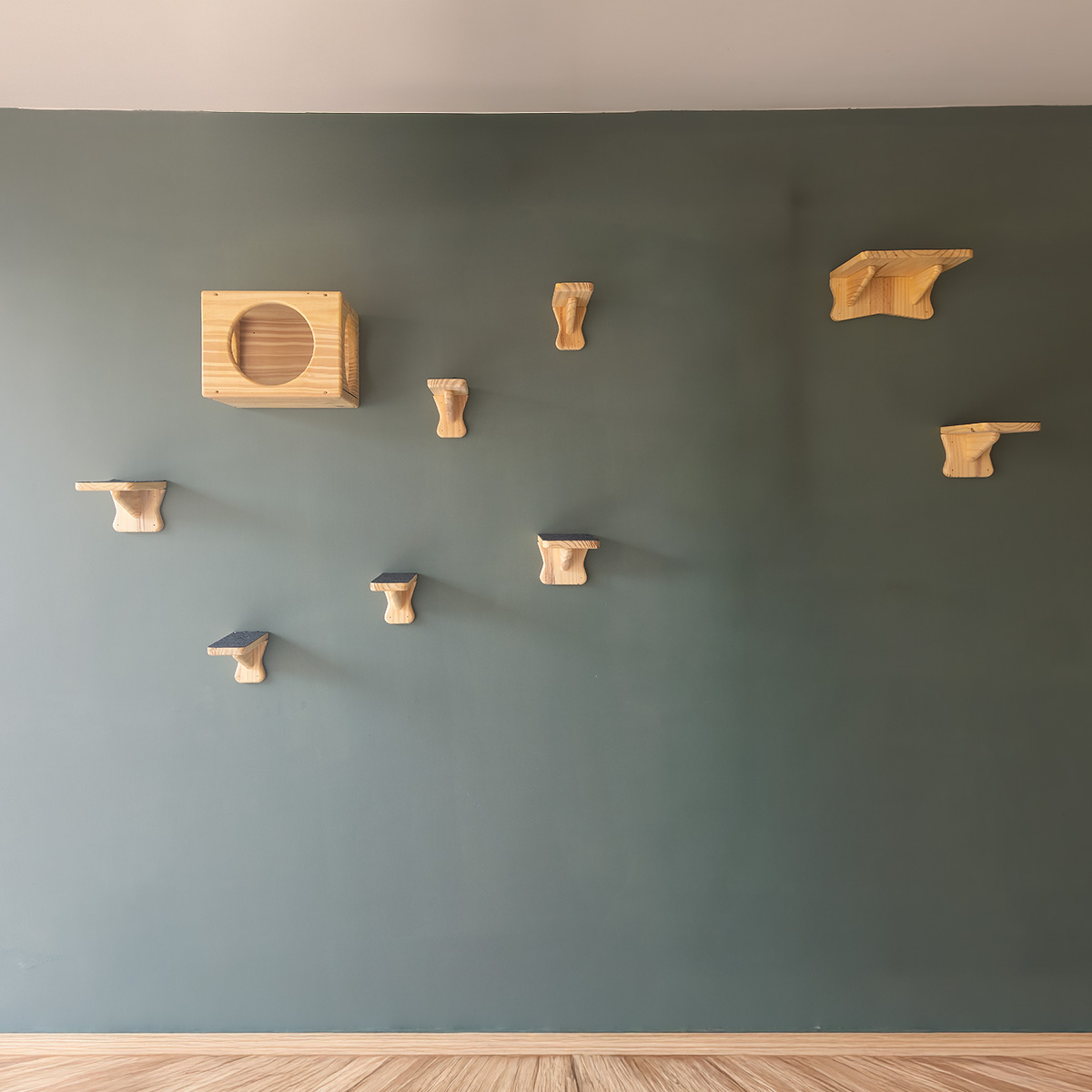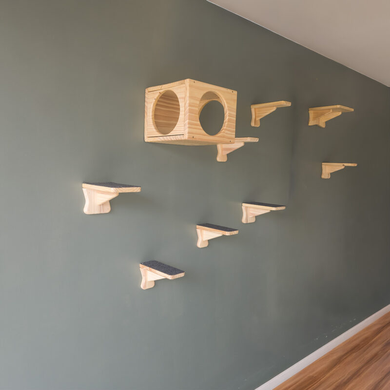 Cada detalhe desse kit foi pensado com carinho: do design minimalista que harmoniza com seu lar, aos materiais naturais como o pinus reflorestado e o sisal, que trazem segurança e conforto para o seu gato se divertir sem preocupações. As bases firmes garantem estabilidade, enquanto o acabamento elegante reflete a dedicação em criar um ambiente acolhedor.